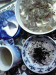 色んな野菜、モズク、豆腐をだしで茹でて味噌を入れただけ。