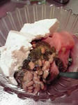 納豆、メカブ、刺身、豆腐を混ぜ混ぜ。