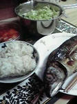 デパ地下で買ったキムチと焼き魚で晩御飯。