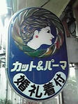 パーマ屋の看板。土産店の人面石。金箔店のイラスト。