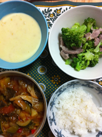 大根が売り切れだったので、代わりにブロッコリー(繊維多いからね)を買って、豚ブロック肉と炒め蒸しした。