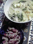 さっきのホタルイカと、カブの葉&空豆のパスタ。