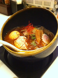 海老の風味はするんだけど、ざらついてて美味しくない。海老の旨味を引き出して丁寧にこして、香菜も使って…という感じではなく、単に殻や頭の部分をぐてぐてに煮ただけのスープって感じ。ちっとも美味じぐねっ。見た目はオシャレだけどね。