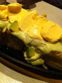 アボカドグラタン。少ないけどこれで結構500円だか600円したような。一人2口くらいで食べ切る感じ。