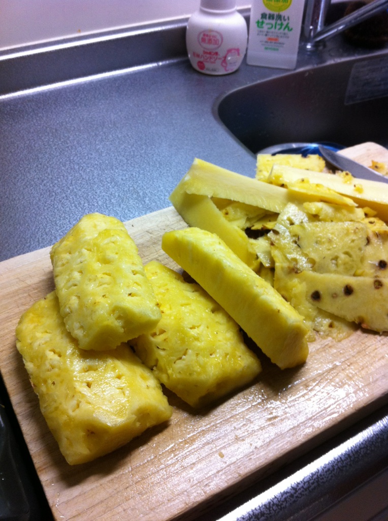 パイナップルってこんな簡単に食べれるんや!! 見た目面倒そうなイメージだったから、目から鱗。
