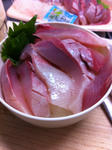 大根おろしたっぷり乗せた丼に乗せて海鮮丼。