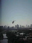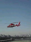飛び立つ消防ヘリ。