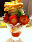 京都駅のマールブランシェであまおうのミニパフェを食す。