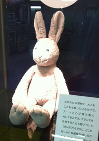 マダム御用達の日本橋高島屋で見かけたんだけど、こっちも欲しい。フランスの子供服メーカーが出してる、タオル地のうさぎぬいぐるみ。
