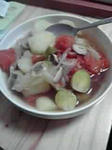 お腹すいたので、リンゴをかじりながら野菜シチューをさささっと。