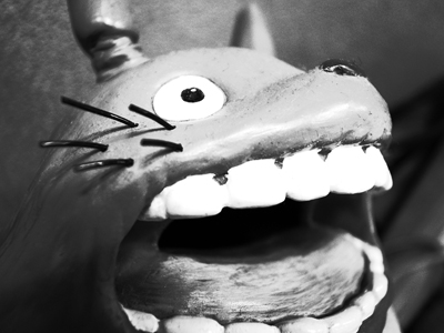 会社のmy机にあるトトロ貯金箱。(ハイコントラスト白黒)