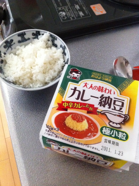 納豆は普通。タレがカレー。味、香りもカレー。うげげっ。