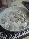 テニス後は、消化を考えてカブと空豆だけのシンプルなシチューを。