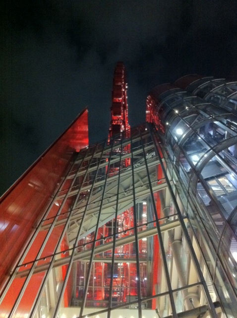 何だっけ、このビル。ま、赤いよ。