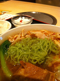 メインのランチセットは、ラーメンのスープが辛くないのと辛いのと2種類。ほかにもちまきランチセットとかがあるけど、やっぱメインでなきゃ!というわけで、今回は辛いスープのを選び、ごくごくごく最後の一滴まで飲み干した。