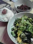 日の丸ご飯と茄子ひき肉炒めで味覚を調整。