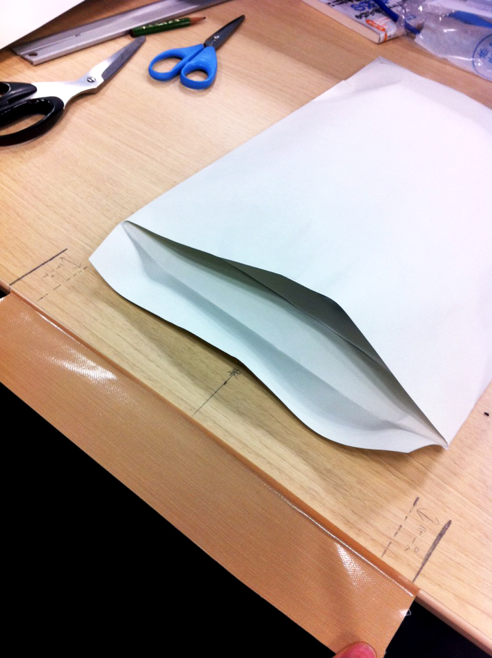 ふと同僚を見たら、机に目安となる線を書いてた。封筒の幅、中央線、テープの幅など。