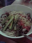 昼に作ってもらった、アスパラガスのパスタ。トマト風味。