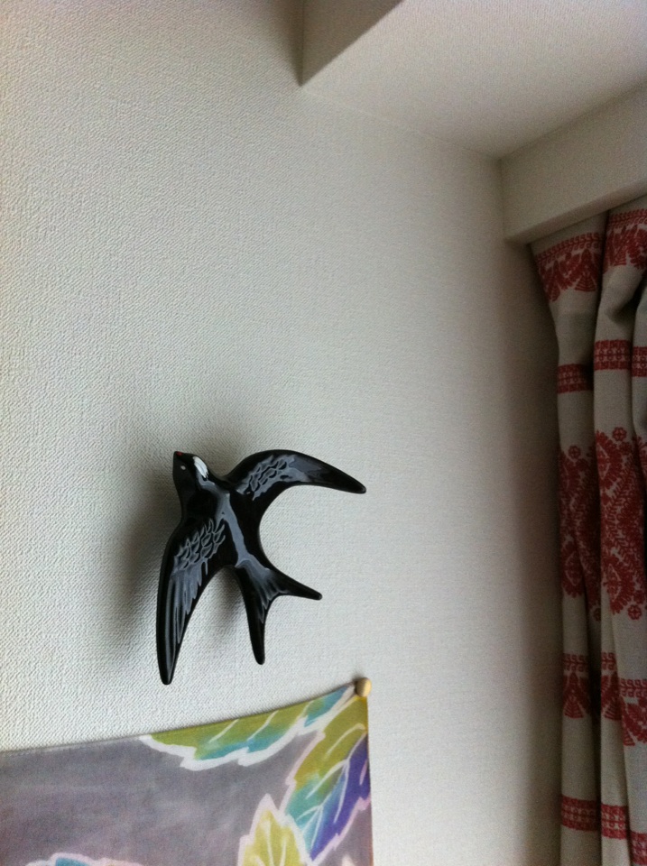 モナコでこの陶器ツバメを売っていたおばあさん、ジェスチャーで「おぉ!今日は冷えるわねぇ!」と。