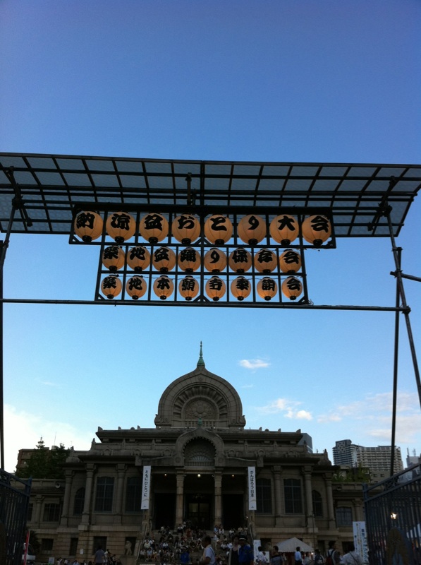 盆踊り行かない?と友人に誘われて築地の本願寺へ。