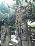 道のあちこちに伝説の看板と手作り彫刻があって、激壺。