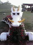 ここでは、滝雨を降らせて天狗を押し潰した荒々しい龍神は、ドラ夢ちゃんになって花に囲まれていました。