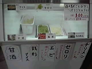 道の駅ことひらにあった、セロリやエビ、ちりめん等の、ありえないアイス群。