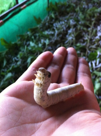 アゲハチョウや娥の幼虫と全然違う!野良猫と改良された大人しい飼い猫が全然違うのと同じで、すごく大人しくてか弱い感じ。ちょっと意外。