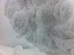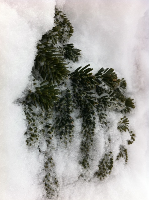 樹氷は、向きによって鳥の羽のような模様を垣間見せる。