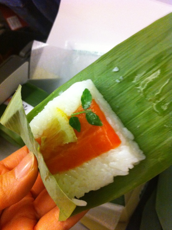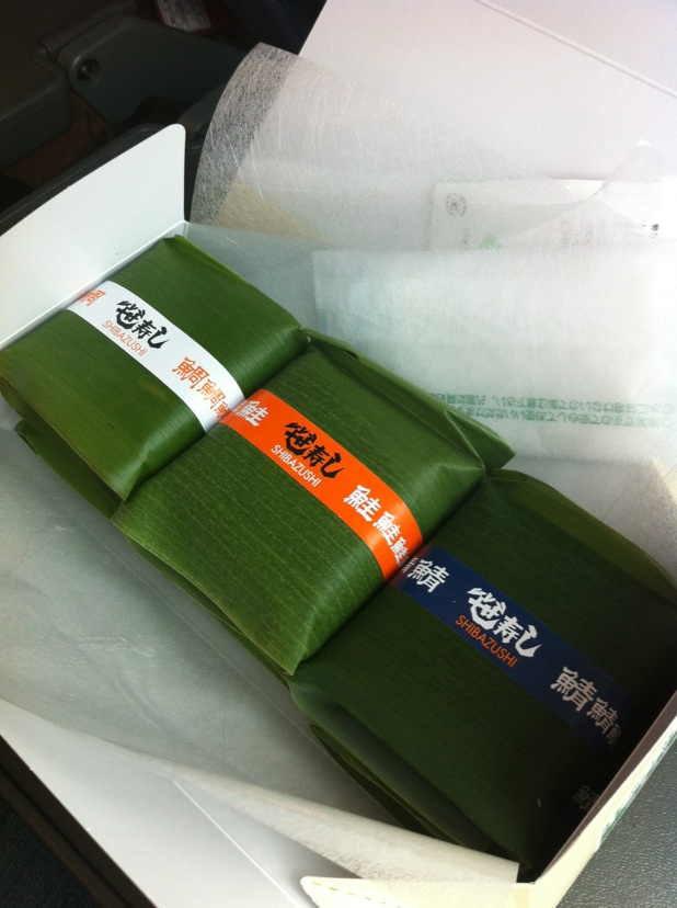 サンダーバードの中で頂いた、金沢名物の押し寿司。んまかったとです。