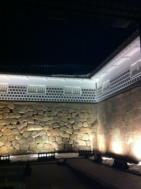 夜の金沢城。玄関の中警備員が一人たたずんでいて可哀相だった。おつです。