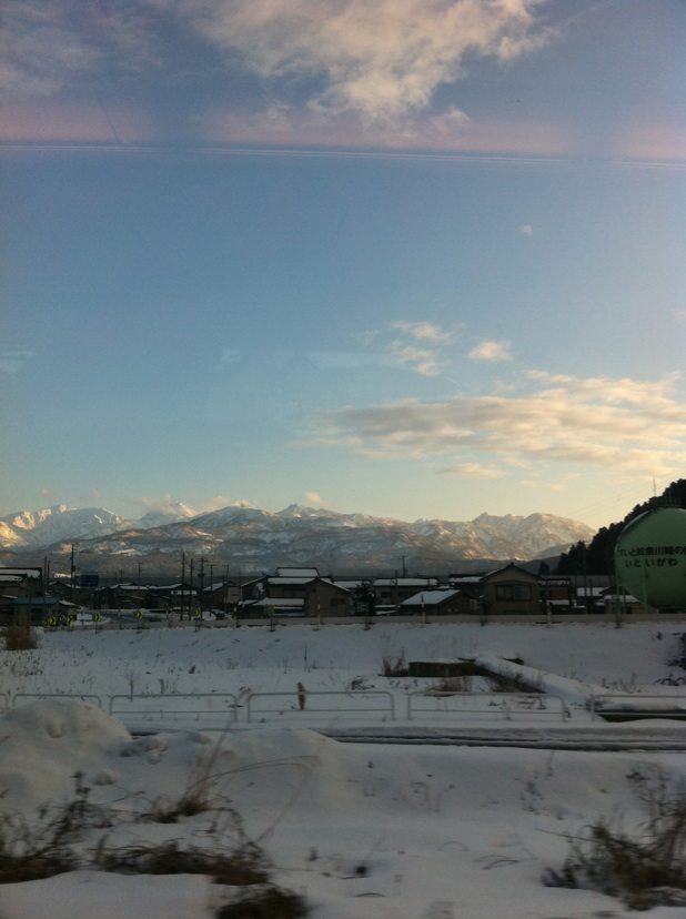 窓に張り付いて眺める雪国。美しい。